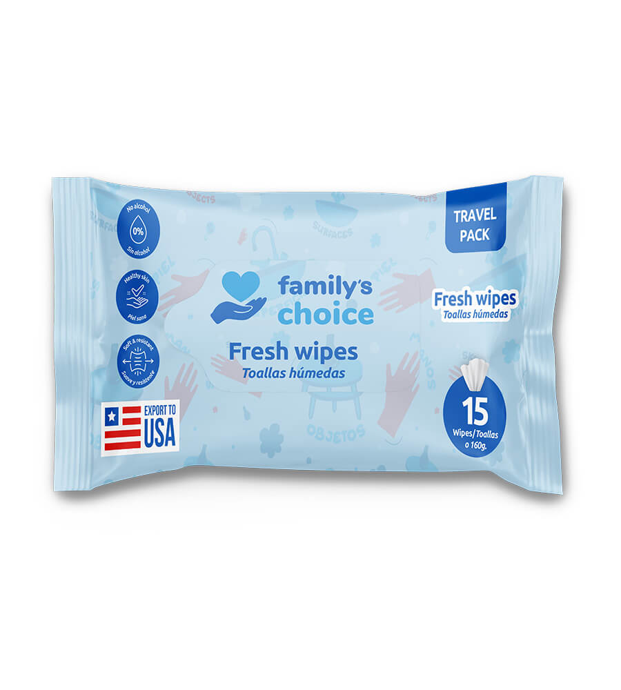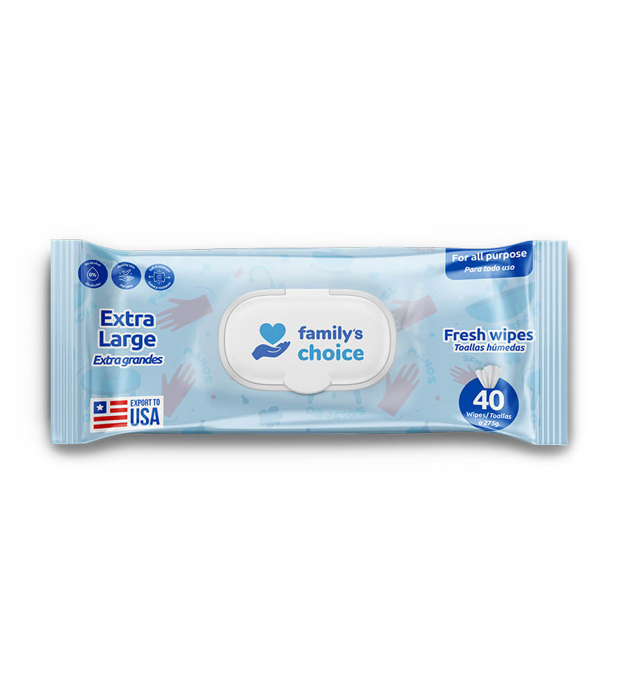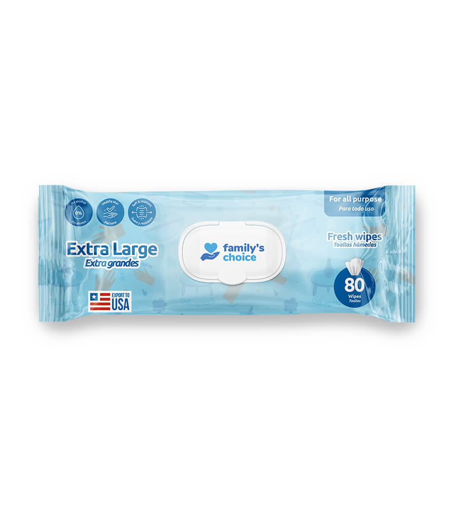 Toallas húmedas para uso familiar, caracterizadas por su tamaño extra grande, suaves y sin alcohol por el cuidado de la piel.